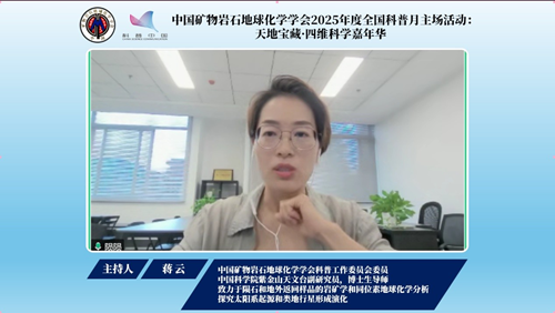 主持人:蒋云 副研究员/博导(中国科学院紫金山天文台,学会科普工作委员会委员,长期从事陨石和地外返回样品岩矿学及同位素地球化学研究)