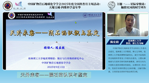 亮点:拆解陨石类型、手标本特征、岩石学密码、放射性测试及搜寻鉴定技巧,三分钟教会公众辨真假,同时揭开月球—火星早期岩浆演化的科研前沿,点燃探索宇宙起源的热情。