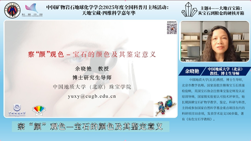 报告人:余晓艳 教授/博导(中国地质大学(北京),北京市教学名师,国家首批注册珠宝玉石质量检验师,英国宝石协会认证培训导师)